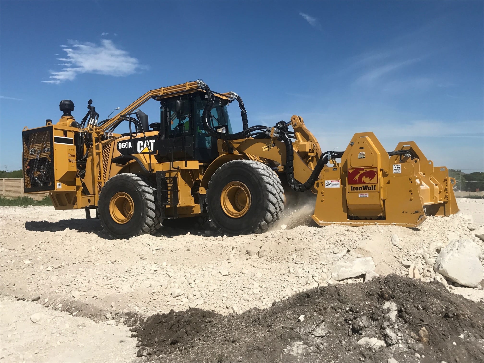 Material processing is a critical first step in many construction and development projects. IronWolf machines enable operators to crush, grind, size, and blend raw material directly on site, reducing the need for offsite hauling, secondary processing, and/or rehaul back to jobsite. Whether working with rock, soil, or reclaimed material, IronWolf equipment delivers consistent output that can be reused as base material, fill, or structural support. On-site material processing improves workflow efficiency, lowers transportation expenses, and allows projects to move forward faster with fewer logistical delays.